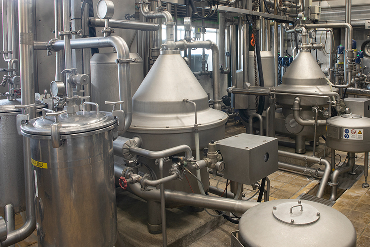 牛乳ができるまでを写真で見てみよう! 1重さを量る 2受入検査 3生乳受入 4小さなごみを取り除く 5冷やしてタンクに貯める 6乳脂肪を細かくする 7殺菌して冷やす 8タンクに貯める 9充填前の検査 10紙パックに充填 11出荷前の検査 12ケースに詰める 13冷蔵庫に保管 14出荷 1重さを量ります 工場に運ばれてきた生乳は車ごと重さをはかり、コンピュータに記録されます。生乳を受け渡した後、空っぽになった車の重さをはかって、その差が受け入れ質量(生乳の量)となります。 2受入検査を行います 工場に到着した生乳は「生乳受け入れ検査」が行われます。これは、その生乳を工場に受け入れてよいかどうかを検査するもので、タンクローリーからサンプルを採取して、厳しく検査します。 3生乳受入を行います 厳しい検査を通過した生乳が、工場に受け入れられます。いよいよここから「工場の中へ」。 4小さなごみを取りのぞきます 生乳に混じっている、目に見えない小さなゴミなどを清浄機(クラリファイア)で遠心分離し除去します。 5冷やしてタンクに貯めます いくつもの厳しい検査に合格した生乳だけを工場に受け入れます。生乳は貯乳タンク(サイロタンク)でゆっくりと撹拌されつつ、5℃以下に保たれます。 6乳脂肪を細かくします(均質化) 生乳の乳脂肪は、小さな脂肪球として浮遊しています。そのまま静かに置いておくと上面に浮いてきて、クリーム層になってしまいます。ここで均質機(ホモゲナイザー)で圧力をかけ、乳脂肪の粒を直径10ミクロンほどから2~3ミクロンの細かい粒子にします。そうすることで生乳は均質化され、飲んだ時に脂肪やタンパク質が消化されやすくなります。 7殺菌して冷やします プレート式の熱交換機を使って、130度で2秒間殺菌します。※超高温瞬間殺菌法-UHT 熱水にはさまれるような形で生乳が通過して、一気に温度を上げて殺菌します。 熱交換機は予熱部と最終加熱部、保時部、そして冷却部のように異なった段階の処理が連続的に行われます。 8タンクに貯めます 殺菌の終わった生乳はパイプを通って貯乳タンクに入り、いよいよパック詰めの時を待ちます。 9充填前の検査を行います 実際に充填される前にテスト充填を行い、官能検査(かんのうけんさ)、比重検査、成分検査が行われます。この厳しい検査に合格しないと製品化されません。 10紙パックに充填 殺菌された生乳は紙パックに充填されますが、一連の作業は充填機により自動的に処理されます。充填機ブースは無菌状態に近づけるためにエアフィルターを装備し、気圧も外部より高められています。 11出荷前の検査 充填された製品の中から決められた本数を抜き出し、細心の注意を払って出荷前の検査をします。 12ケースに詰める 出荷前の検査を終えた製品は、機械によって次々とケースに詰められていきます。「らくのう牛乳」の出荷まであとわずかです。 13冷蔵庫に保管されます ケースに詰められた製品は、冷蔵庫で保管されます。冷蔵庫の中で出荷前の検査結果を待ちます。検査結果をクリアすれば、いよいよ出荷です。 14いよいよ出荷 最後の検査をクリアした製品は、保冷庫に積まれ保管し、それぞれの牛乳販売店へ届けられます。長かった「牛乳ができるまで」の行程もこれが最後。らくのうマザーズの工場を後にし、「らくのう牛乳」の小旅行の始まり・・・あと少しでみなさまのお手元に到着です。