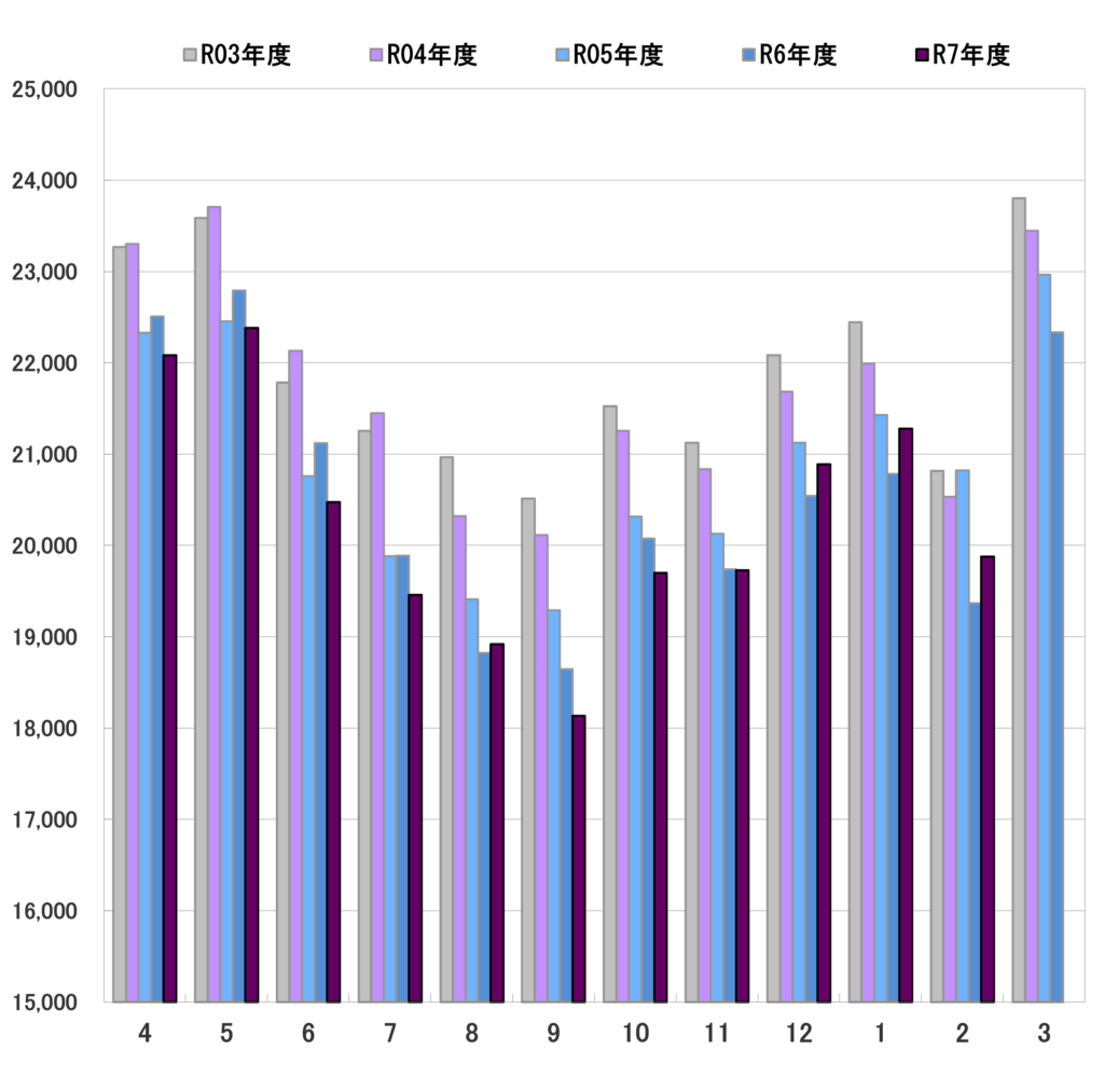月別生乳生産量推移(熊本県酪連取扱)